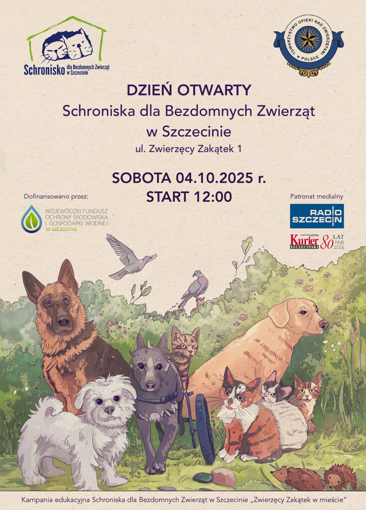 4 października zapraszamy wszystkich Zwierzolubów na wielki Dzień Otwarty Schroniska dla Bezdomnych Zwierząt w Szczecinie, który łączymy z obchodami Światowego Dnia Zwierząt oraz inauguracją nowego programu edukacyjnego Schroniska pn.: „Zwierzęcy Zakątek w Mieście”.🐾🎉