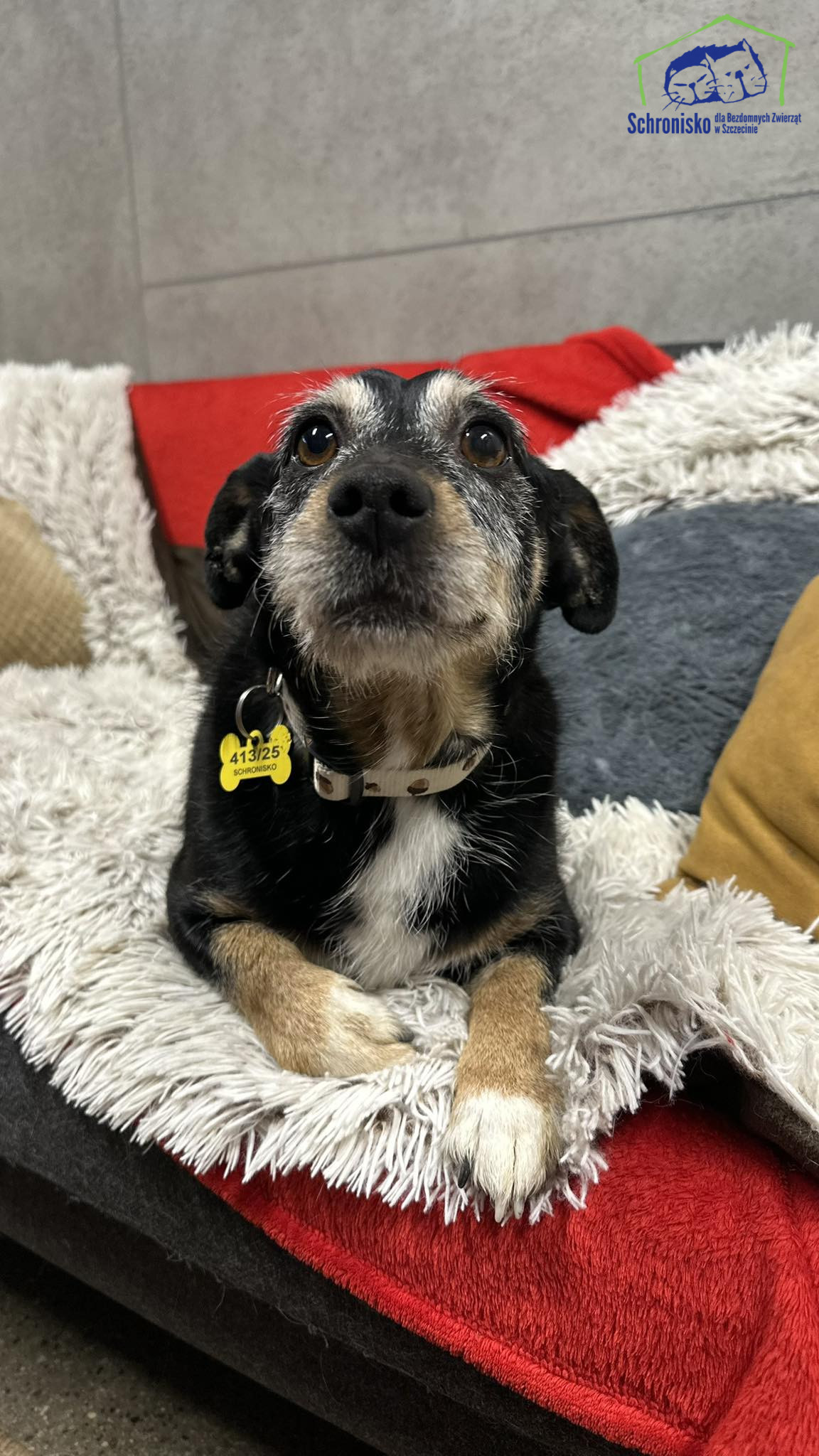 Pies trafił do naszego schroniska w dniu 29/12/2025 r. Dowieziony przez pogotowie interwencyjne z pętli w Podjuchach.