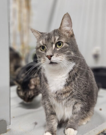 Silver to kocur, który trafił do nas po śmierci swojej opiekunki razem z dziewięcioma innymi kotami. Z początku pobyt w schronisku był dla niego bardzo trudny i większość dni spędzał chowając się w budce. Z czasem zaczął jednak robić małe, powolne postępy i niepewnie wychylać się ze swojego ukrycia. W schroniskowej rzeczywistości bardzo pomaga mu jego towarzysz – Puchacz, więc jeśli komuś marzy się adopcja w dwupaku, to chłopacy już pakują walizki. Ale Silver równie dobrze odnajdzie się jako jedynak. W nowym dowym na pewno potrzebowałby dużo czasu i cierpliwości, a więc też takiego opiekuna mu szukamy. Takiego, który da mu czas na ponowne zaufanie i poczucie bezpieczeństwa.