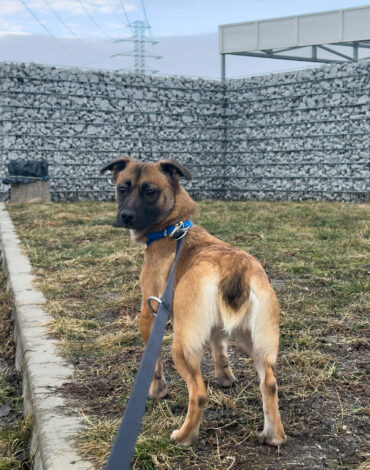 Mila trafiła do nas jako sunia bardzo wycofana i niepewna. Od pierwszych chwil w schronisku na widok człowieka reagowała lękiem – głośno poszczekiwała lub wycofywała się i chowała w bezpieczne dla siebie miejsce. Każdego dnia widać jednak drobne postępy i powolne budowanie zaufania.