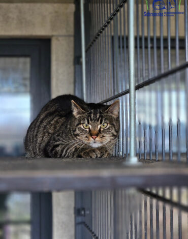 Podobnie jak ona, bardzo źle znosi pobyt w schronisku. Większość czasu spędza w zewnętrznej części kociarni, gdzie czuje się nieco bezpieczniej i ma więcej przestrzeni. Jest ostrożna i na razie woli obserwować świat z dystansu, niż wchodzić w bliższe interakcje.